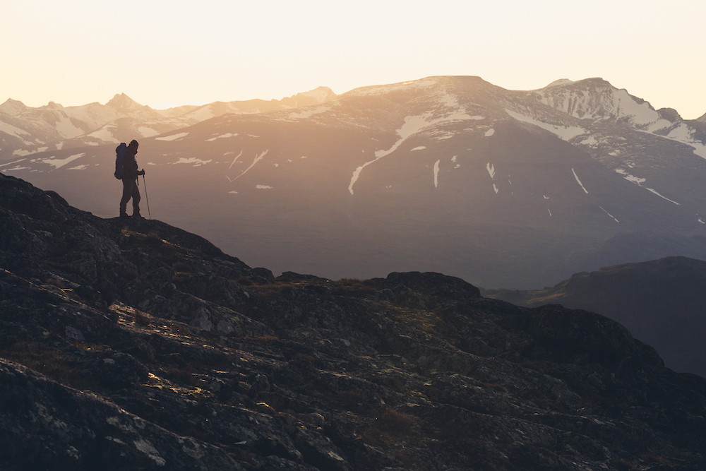 Figure 10 사렉국립공원의 산 너머로 해가 지는 풍경을 감상하는 앤더슨. 매우 기대하던 곳이었고 그저 풍경을 더 즐기고 싶어 하루를 추가로 머물렀다.