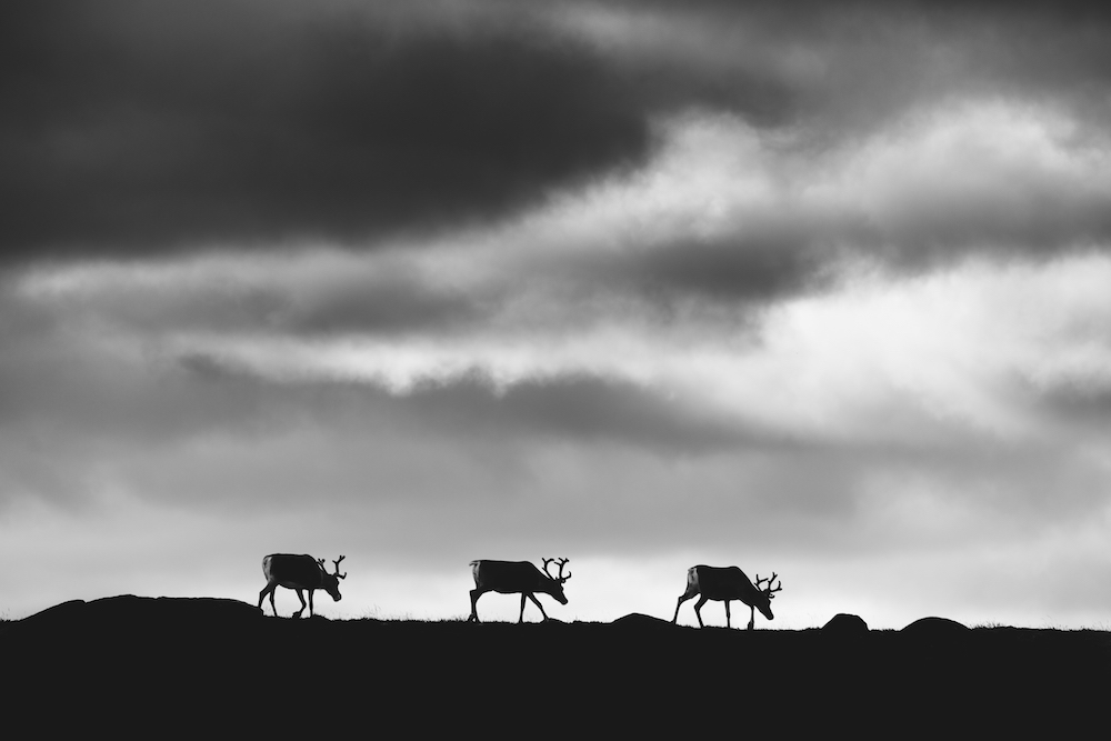 Figure 7 쿵스레덴에 사는 순록들. 사람과의 거리를 유지하는데 매우 조심스러우면서도 가끔은 놀라울 정도로 호기심을 보이기도 한다.