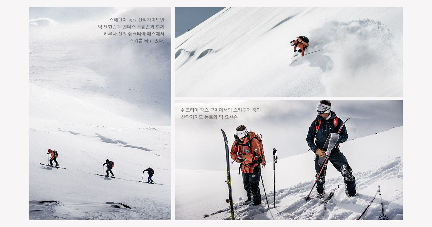 “좀더 이국적인 느낌의 스키투어를 위해 기존의 스키를 멈추면 아마도 최고의 경험을 하게 될 것입니다. 대신 스스로에게 더 의지하고, 사전에 충분히 훈련해야 합니다. 또한 긴 거리를 이동해야 하죠. 하지만 그만큼 더욱 특별하고 가치 있는 보상이 따릅니다."