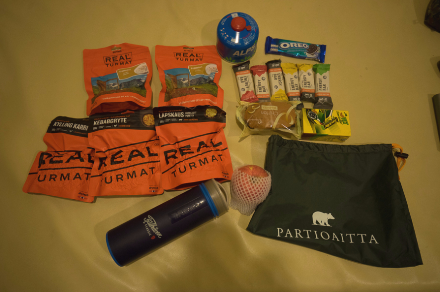 지급품 : 건조식 5개, 정수물병, 행동식, 가스1개, 1일차 아침