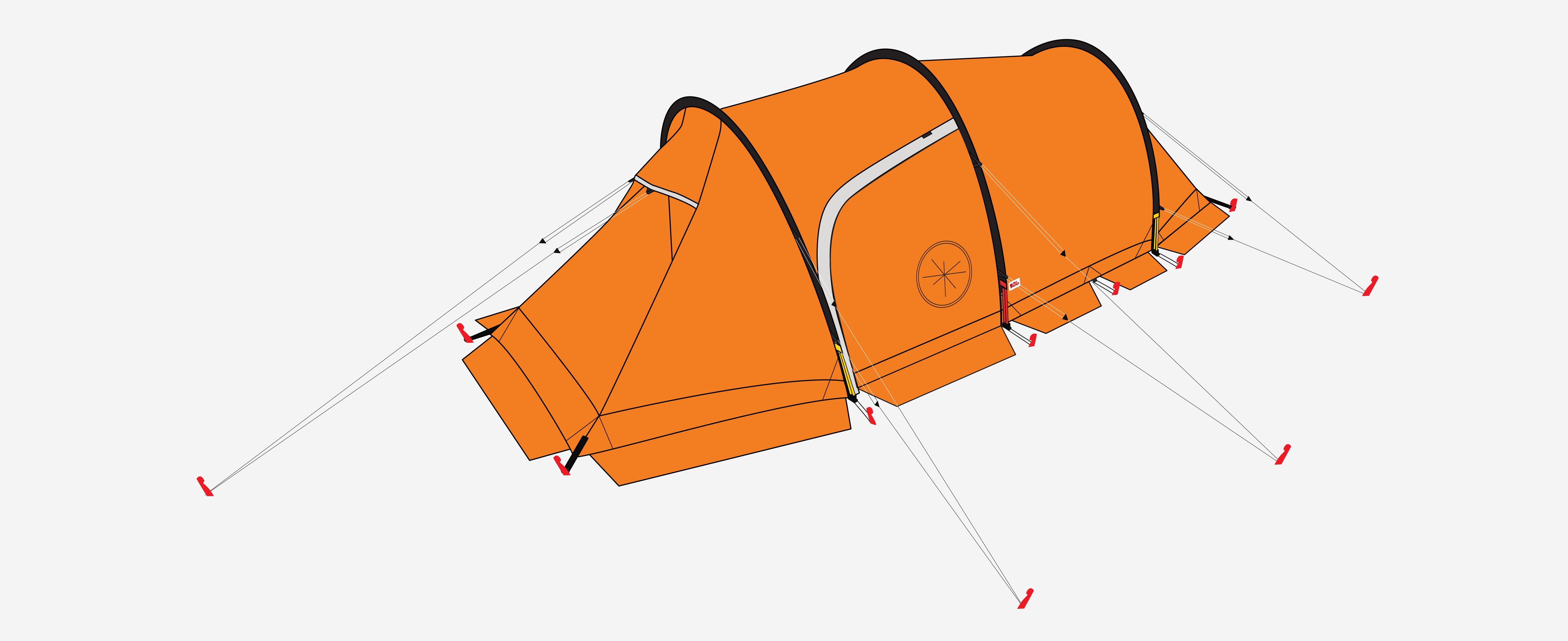 가장 극한의 환경에서 사용할 수 있는 텐트입니다. 극도로 도전적인 동계 환경에서 장기 탐험을 할 수 있도록 고안된 텐트로 힘과 안정성, 기능에 있어 매우 우수하여 눈이나 폭풍 속에서도 사용할 수 있습니다.