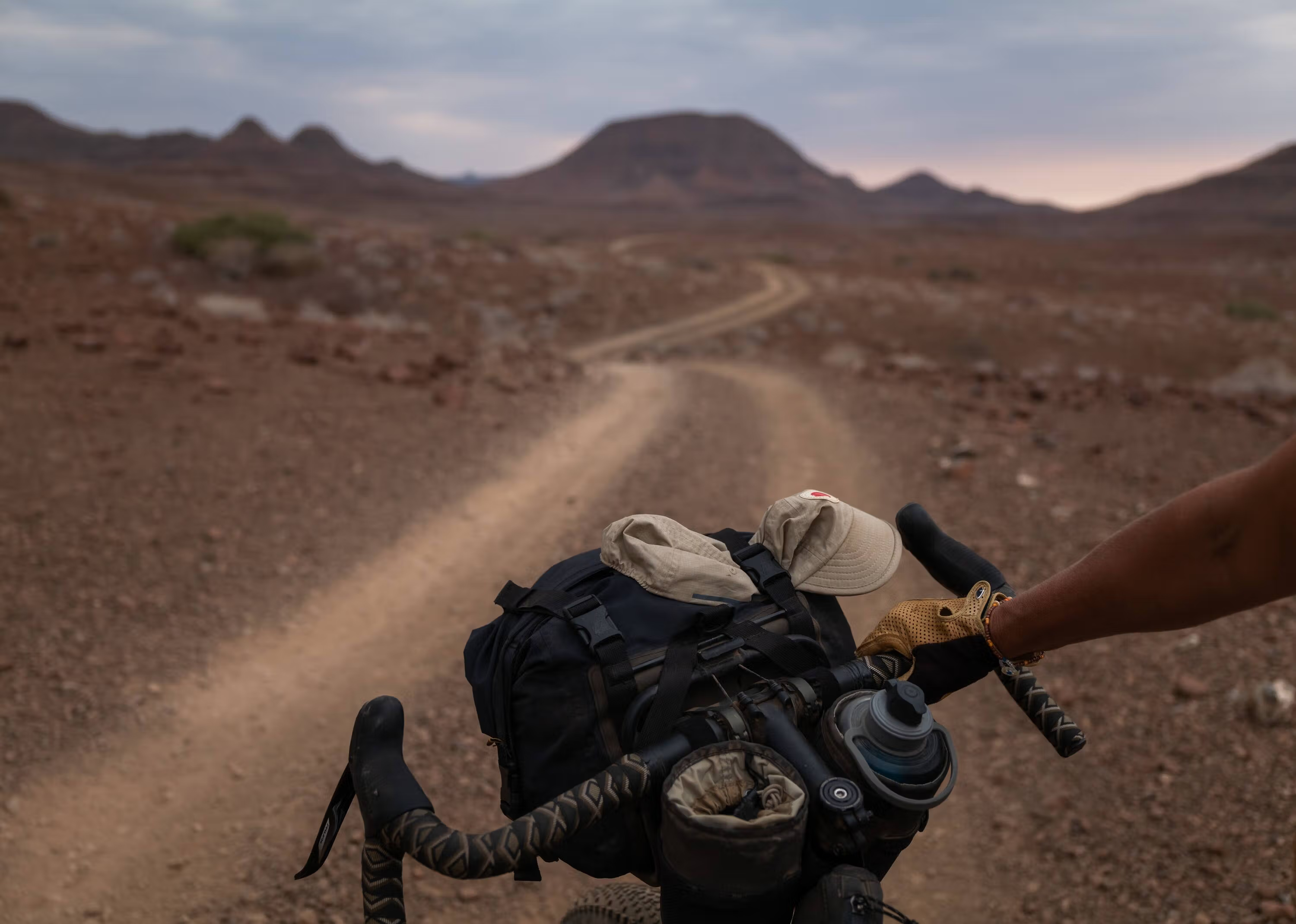 앙골라 국경에서 그들은 자전거를 타고 나미비아를 지나 남쪽으로 향했습니다. 다마랄란드(Damaraland )와 데솔레이션(Desolation Valley)를 향해 나아가는 동안, 숨 막힐 듯 아름다운 산악 지대에서 사막 코끼리, 코뿔소, 얼룩말을 만났습니다. 5 주간의 자전거 여행 끝에, 산들바람이 부는 대서양 연안에 다다랐습니다. 헨티스 베이(Henties Bay)에서 잠시 정차한 후, 강한 역풍을 뚫고 스와코프문트(Swakopmund )에 도착했습니다. 더위, 짐 싣고 가는 자전거, 울퉁불퉁하고 모래투성이인 길은 힘든 조합이지만, 옌스와 제니는 유연한 사고방식, 충분한 휴식, 그리고 웃음이 함께했던 덕분에 아프리카 여행이 특히 만족스러웠다고 말합니다. 옌스는 이렇게 말합니다. "자전거 배낭을 메면 필요한 모든 것을 가지고 다니게 되고, 매일 해야 할 일은 아주 간단합니다. 최선을 다해 페달을 밟는 거죠. 텐트를 치고 침낭 속으로 기어들어가 지치고 뻐근한 몸으로 별을 바라보는 건 정말 놀라운 경험이었습니다."