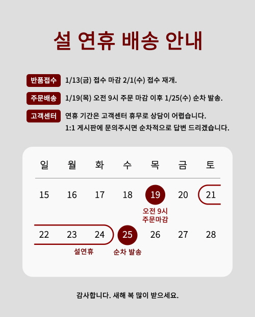 [공지]설 연휴 배송 및 고객센터 휴무 안내
