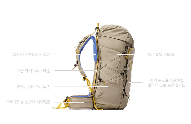 45L 용량의 메인 수납공간은 내구성이 매우 뛰어난 비닐론 F 원단과 고급 자작나무 프레임으로 제작하였습니다.
